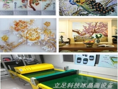 厂家直销全自动冰晶画设备,货比三家,价格合理,免费培训技术,可加工系列产品,广泛应用于酒店、宾馆,KTV、茶楼、酒吧、桑拿浴所、家庭等等。花鸟鱼虫,飞禽走兽,山水人物,梅兰竹菊、名人字画等,皆可利用这项技术运用到普通玻璃上,而且每件作品精美逼真,栩栩如生,古朴典雅别致新颖,令人大开眼界,要求用玻璃装饰空间的家庭、公司企业、酒店、宾馆等等络绎不绝,引发了装饰行业一场全新的领域!