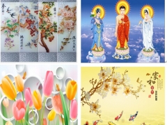 你是否曾在清透的玻璃上看见生动活泼的群鲤嬉游?或是孔雀开屏的优雅高贵?你可知道,这些栩栩如生的景象,都是彩雕工匠一层一层抠图,再一笔一笔地喷漆上色而制成的,它层次质感丰富,色彩艳丽、润洁光滑、晶莹剔透、珠光、荧光、仿玉、仿大理石材料潜在着诱人的艺术魅力,非常适合开发具有民族特色的雕刻镶嵌艺术。运用冰雕、浮雕、透雕、圆雕等技艺手法,雕刻镶嵌具有民族艺术风格的花鸟鱼虫、青山绿水、仙鹤祥云、人物仕女、亭台楼阁、龙飞凤舞等,制作具有民族装饰艺术风格的屏风、四页屏、扇面挂屏等装饰楼堂宾馆、展厅、会议厅、家庭,不仅体现中华民族深厚的文化内涵,而切显示出民族装饰艺术的精美、华贵、高雅,每平米材料成本35-50元,市场售价260-320元。