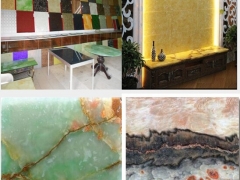 集天然之美,纹路自然、与灯光辉映,烘托出晶莹通透,金碧辉煌的视觉效果,外表高贵柔和,花色品种丰富,采用高档进口颜料,色彩逼真、颜色清纯、七彩斑斓、令人赏心悦目,可设计加工成不同的光感和色调,可根据不同的空间布局、主体格调、光线组合等因素选择相应产品,有层次分明的翡翠石,玛瑙石,透光石,石英石,玉石,美纹石,珊瑚石,可根据无限的创造力来确定整体的装饰造型,大面积使用,更能体现自然流畅的舒适效果。